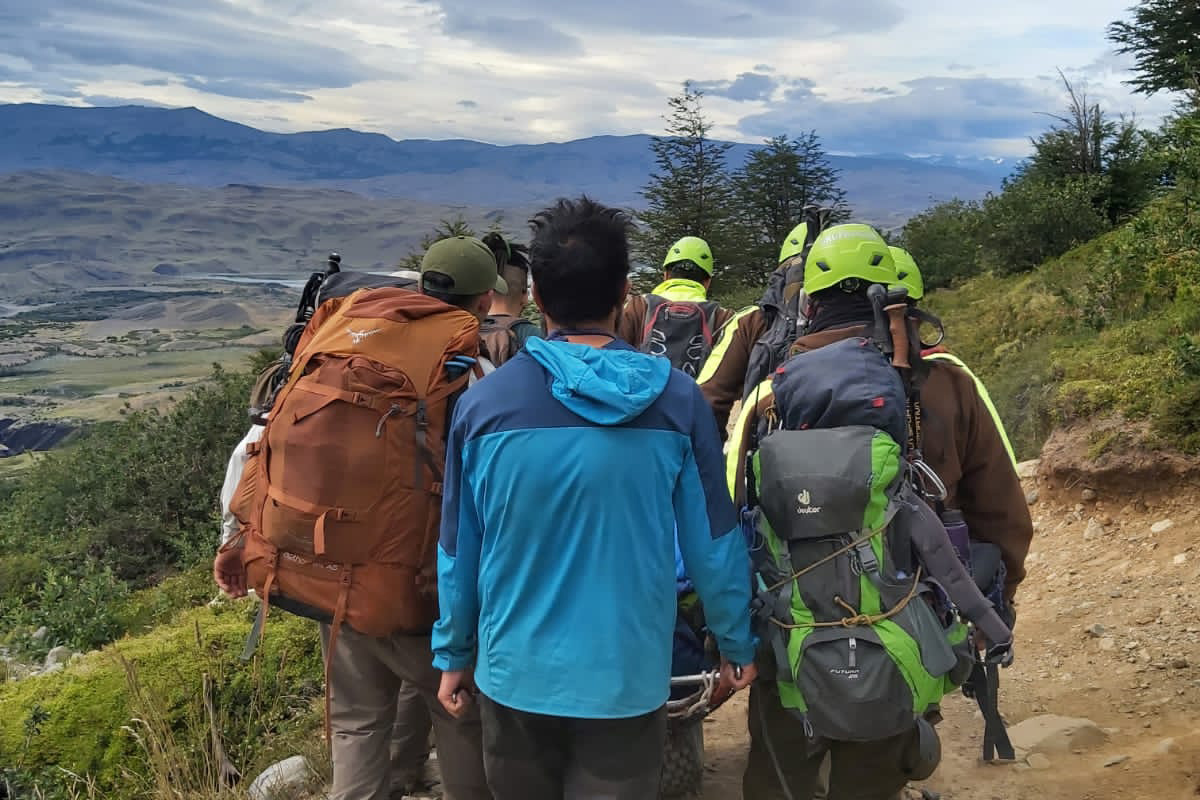 En conjunto con miembros de Carabineros, CONAF y Reserva Las Torres, guardaparques de la ONG AMA Torres del Paine coordinaron la evacuación de una persona lesionada en el Parque Nacional Torres del Paine.
