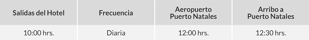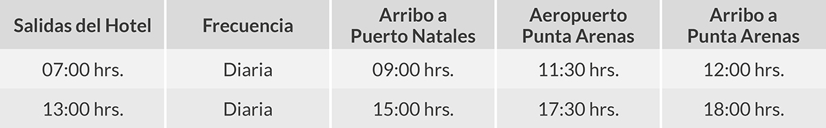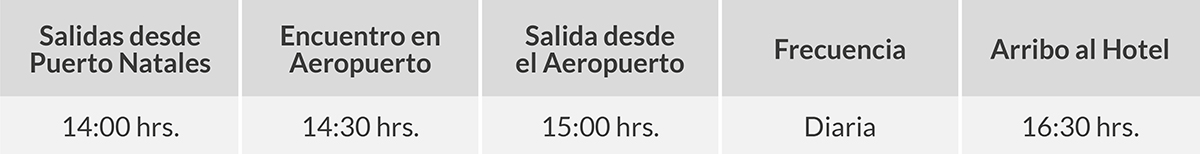 Horario de salidas desde Puerto Natales (FTE)